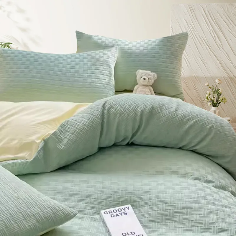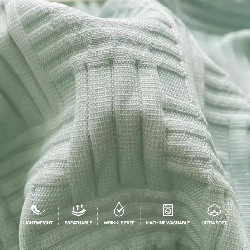 Experience the ultimate in lightweight luxury with our high-quality gaufre fabric. Its signature bubble texture adds dimension and texture, while ensuring superior breathability and moisture-wicking properties. Say goodbye to sweaty nights, as this fabric keeps your bedding fresh and cool, even during the hottest summer months, promising a restful sleep every night.